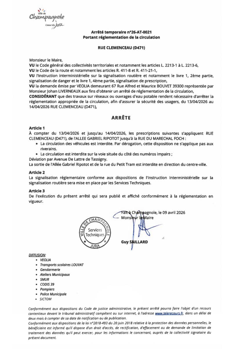 Une déviation est mise en place par l’avenue de Lattre de Tassigny.