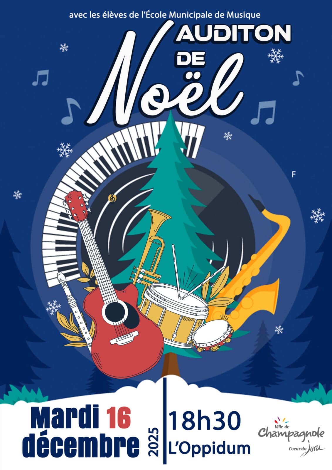 Audition de Noël mardi 16 décembre 2025 - 18h30 Culture Champagnole L'Oppidum Infos pratiques Email non disponible Téléphone non disponible Site internet non disponible